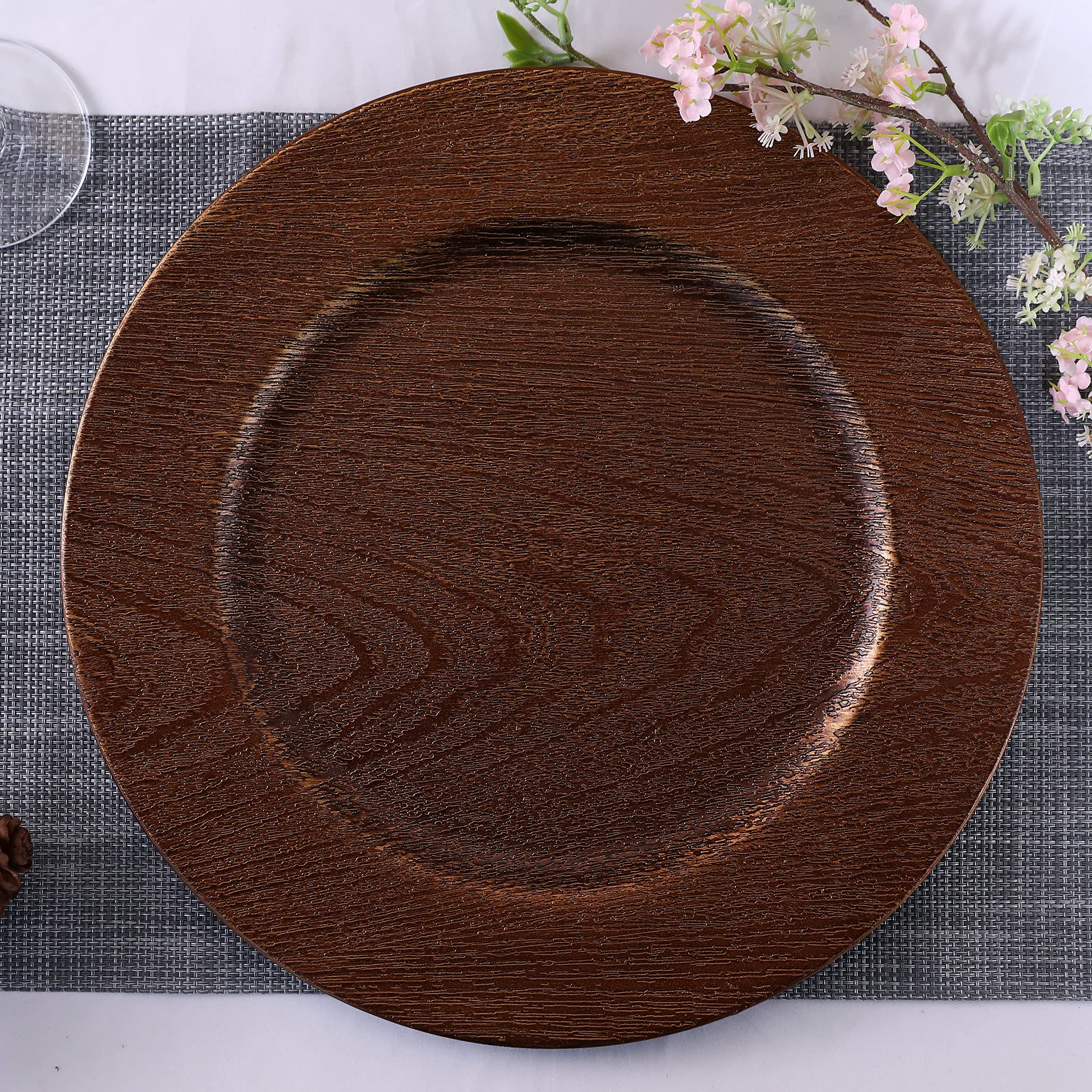 Amazon Com 6 Pieces Faux Wood Charger Plates 13 Inch Rustic Woodgrain Charger Wood Chargers For Dinner Plates Wedding Dark Wood Design Chargers Antique Plastic Plate For Parties Weddings Upscale Events Charger Plates